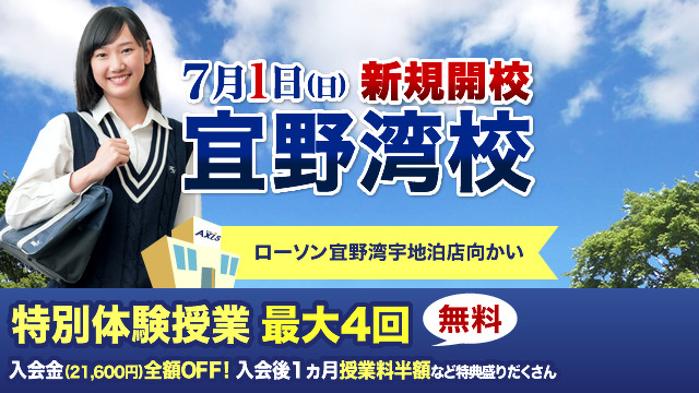 開校を記念し、特典をご用意しました。見学・学習相談は、いつでも承っておりますので、ぜひこの機会に「個別指導Axis宜野湾校」をご利用ください。
