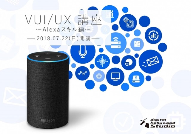 IT関連及びデジタルコンテンツの人材育成スクール、デジタルハリウッドが運営をする、Webとアプリのラーニングスタジオ『デジタルハリウッドSTUDIO』のSTUDIO渋谷では、音声によるインターフェイスについて学ぶ『VUI/UX講座~Alexaスキル編~』を2018年7月22日(日)に開講いたします。