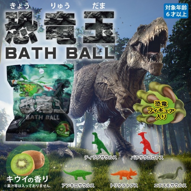 ヒロ・コーポレーション(福岡県北九州市)は、キウイの香りで恐竜フィギュア入りの「恐竜バスボール」を新販売する。