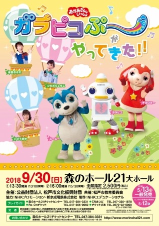 千葉県松戸市・森のホール21の大ホールで「おかあさんといっしょ ガラピコぷ~がやってきた!!」公演が開催されます。