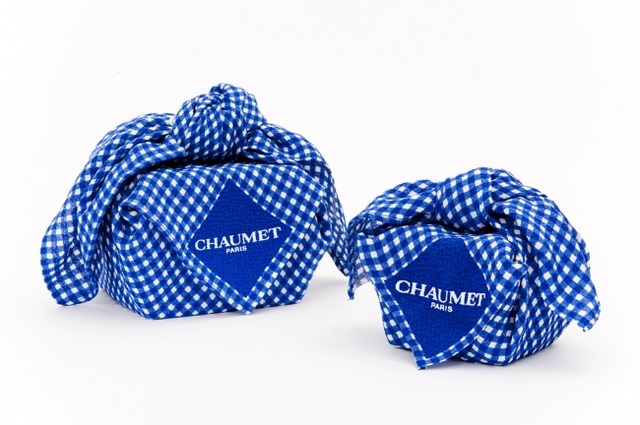 京友禅の老舗「千總」とコラボレーションしたこのオリジナル ふろしきは、ショーメ ブルーにフランスの伝統的なギンガムチェックを用いました。