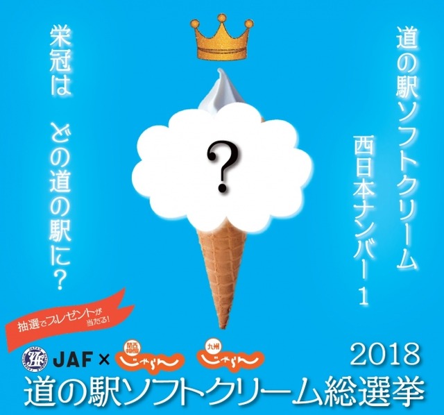 31日(金)、「道の駅ソフトクリーム総選挙2018」を開催します(共催:JAF関西本部、中国本部、四国本部,関西・中国・四国じゃらん、九州じゃらん)。