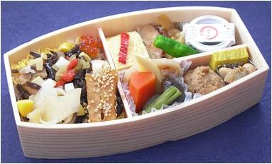 具沢山十五目のちらし寿司と升本人気のお料理を舟形のお弁当に!
