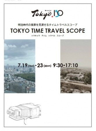 このたび、都庁南展望室に、明治時代の東京の風景をVR体験できる双眼鏡「TOKYO TIME TRAVEL SCOPE」を設置するほか、「東京150年」の連作ポスター等の展示も実施しますので、お知らせいたします。