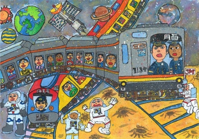 「地下鉄」をモチーフに「安全やマナー」などをテーマにした子どもらしい夢のある楽しい絵。