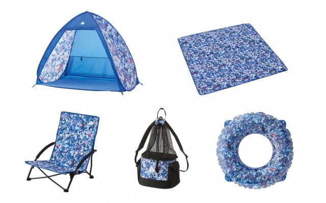 本シリーズは、ブルーを基調とした花柄のデザインが特徴の、夏にぴったりなアウトドアアイテム全5種類です。