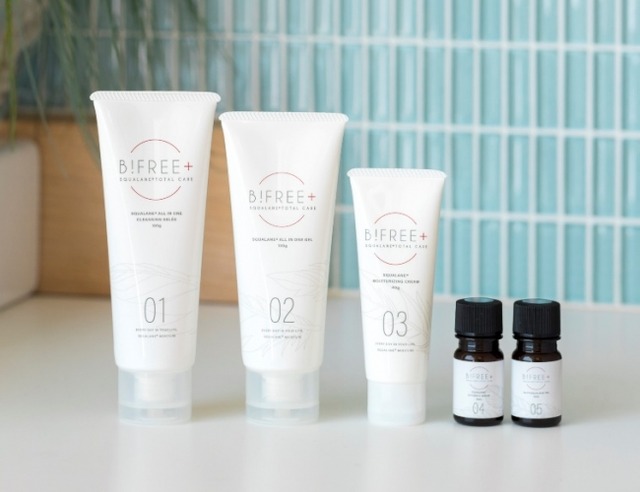『B!FREE+』シリーズは国産化粧品。防腐剤など余計なものを含まず超敏感肌の方でも手軽にお使いいただけるうえ、純度99.7%スクワラン※4を配合で良質なクオリティのラインナップを、低価格でご提供します。海外(中国)でも発売していきます。