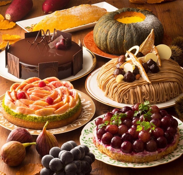 9月は“秋の収穫祭”をテーマに、巨峰、栗、さつま芋、カボチャ、イチジクなどを使用したスイーツをご用意。ジューシーな巨峰やプチプチとろとろの食感が楽しいイチジクを使用したタルトをはじめ、フランス産マロンペーストのクリームを用いた「ジャンボモンブラン」、皮ごと食べられる「カボチャプリン」、長さ約30cmの「ロングスイートポテト」などが、ずらりと並びます。