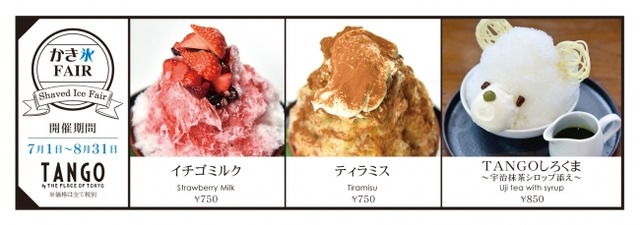 大変好評だった「イチゴミルク」「ティラミス」に加え、今年は「TANGOしろくま~宇治抹茶シロップ添え~」が新しく加わりました。