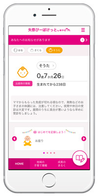 ◆地域密着型の子育て支援アプリで妊娠・出産・育児をしっかりサポート! 矢祭町に採用された『矢祭ぴーぽけっと』は、スマートフォン・タブレット端末・PCに対応したサービスで、妊産婦と子どもの健康データの記録・管理や予防接種のスケジュール管理、出産・育児に関するアドバイスの提供など、育児や仕事に忙しい母親や父親を助けてくれる便利な機能が充実しています。
