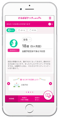 高山市に採用された『さるぼぼタッチ』は、スマートフォン・タブレット端末・PCに対応したサービスで、妊産婦と子どもの健康データの記録・管理や予防接種のスケジュール管理、出産・育児に関するアドバイスの提供など、育児や仕事に忙しい母親や父親を助けてくれる便利な機能が充実しています。