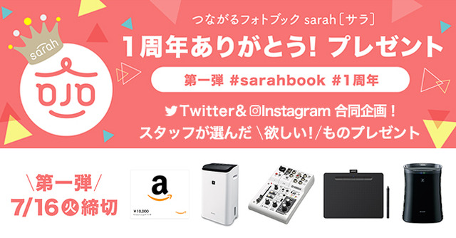 スマホアプリで簡単に作れるフォトブックサービス”sarah [サラ] ”は、7月1日(日)10時よりサービス開始から1周年を迎えたことを記念して、フォトブックの全品を対象とした39%OFFキャンペーンを開催しております。