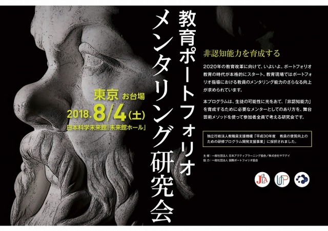 一般社団法人日本アクティブラーニング協会(東京都千代田区、会長:安西祐一郎、理事長:相川秀希)は、eポートフォリオの活用によりいっそう推進されるであろう「学習者中心の学び」における教員のあり方を考えるため、「教育ポートフォリオ メンタリング研究会」を開催し、全国の教育関係者との協議を進めてまいります。なお、このプログラムは、独立行政法人教職員支援機構の「平成30年度教員の資質向上のための研修プログラム開発事業」にも採択されています。