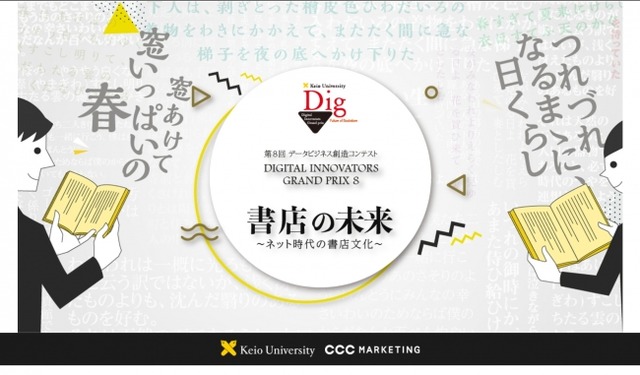 慶應義塾大学SFC研究所(所長:田中 浩也)データビジネス創造・ラボ(代表:村井 純)は、今回のビジネスパートナーであるCCCマーケティング株式会社(代表取締役社長:北村 和彦、以下 CCCマーケティング)のサポートのもと、「第8回 データビジネス創造コンテスト ~Digital Innovators Grand Prix 8(略称:DIG 8)」を開催いたします。