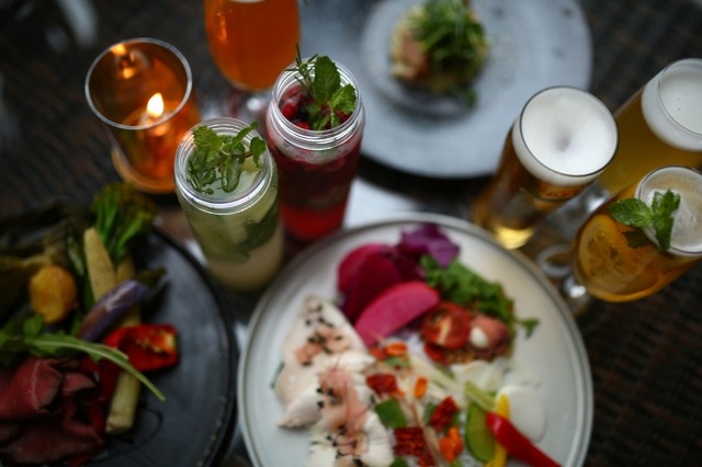庭園の緑や夜風を感じながら、冷たいビアカクテルや提携農家から届くフレッシュな野菜を使ったお料理でちょっと大人のビアテラスをお届けします。