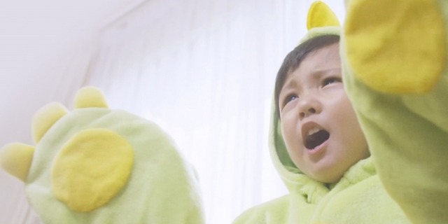 「イヤイヤかいじゅう」役は、2018年度NHK大河ドラマ「西郷どん」や「ダイハツ タント」CMの「おにぎり~」がかわいいと、今大注目の子役・小山蒼海(こやまそう)くん(撮影時はまだ3歳!)。今回の撮影では「ゴジラ」動画を見て役作り。「イヤイヤかいじゅう」になりきって、「ヤダぁ~!」とブロックを豪快に飛ばしたり、パパ役の吉田悟郎さんとの掛け合いもバッチリ。着ぐるみ姿で熱演してくれました! CMラストの「がっけん!」の声もとってもキュートなので、ぜひ最後までご覧ください。