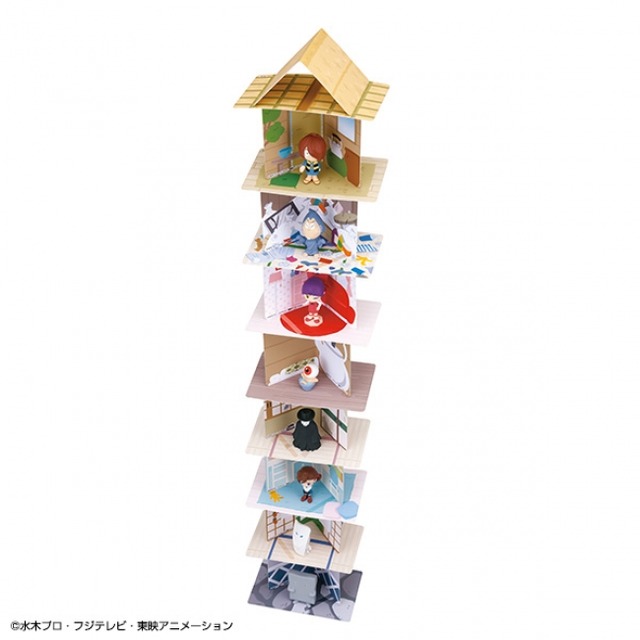 セット内容:コマ…8種(鬼太郎、目玉おやじ、ねこ娘、ねずみ男、ぬりかべ、一反もめん、犬山まな、名無し)、 ゆかカード…8枚、へやカード…8枚、やねカード…2枚