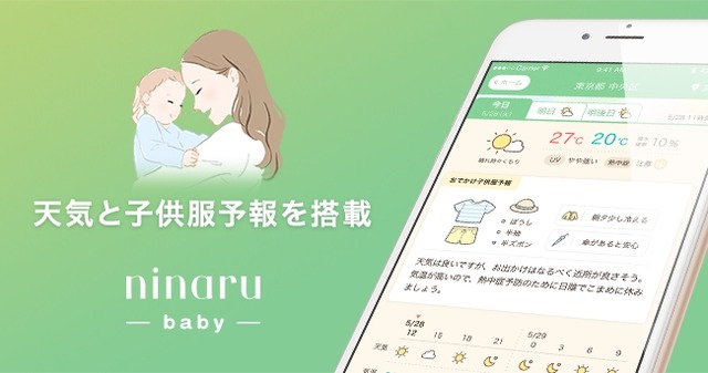 株式会社エバーセンス(本社:東京都中央区、代表取締役:牧野 哲也)は、2018年7月18日、育児をサポートする無料アプリ「ninaru baby(ニナルベビー)」(iOS版)において、天気と子供服予報を搭載いたしました。お天気に合わせ、最適な子供の服装や持ち物の提案をいたします。