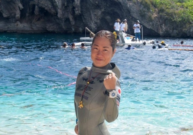 「FIM88m成功しました!日本記録更新です!とても緊張しましたが気持ちよく潜ることができました。」