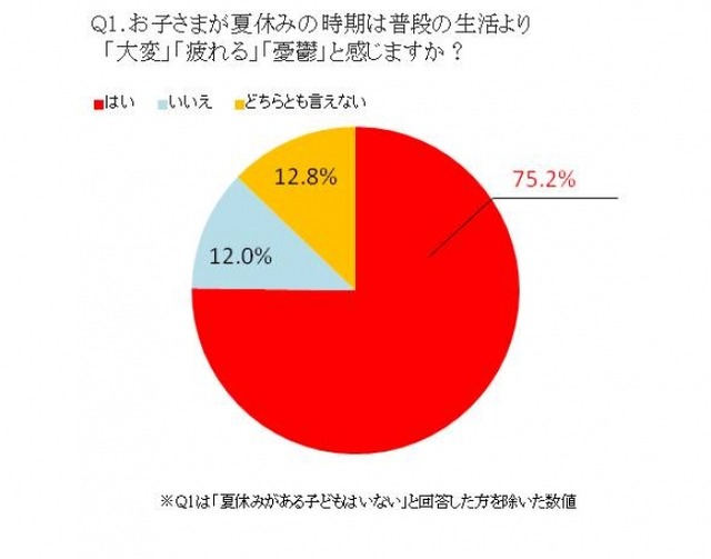 ■夏休み、実は「疲れる」「大変」と75.2%のママが回答。理由の1位は“食事を作る回数が増えるから”特に負担が大きいのは『お昼ごはん』