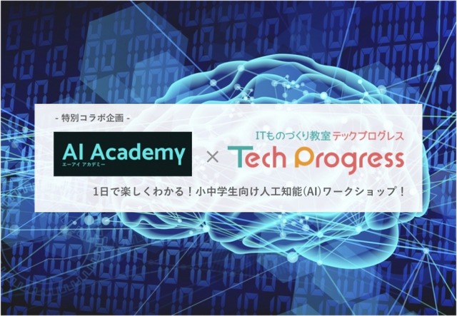 株式会社テックプログレス(本社:愛媛県松山市/ 代表取締役:武田知大、以下「当社」)は、この度、人工知能技術に特化したオンラインプログラミング学習サービス「AI Academy」を運営するサイバーブレイン株式会社(本社:東京都新宿区/ 代表取締役社長:谷一徳、以下「サイバーブレイン」)と共同で、愛媛県内の小中学生を対象に、人工知能技術(AI)に関する理解を深め、活用する面白さを体験できる1日ワークショップを共同で開催する運びとなりましたことをお知らせいたします。