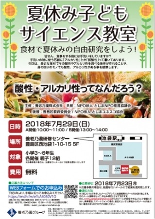 養老乃瀧株式会社(本社:東京都豊島区、代表取締役社長:矢満田 敏之)は、豊島区内の小学生を対象に、豊島区教育委員会、NPO法人としまユネスコ協会の後援を受け、「夏休み子ども教室」として2018年7月22日(日)に料理教室、7月29日(日)にサイエンス教室を開催します。