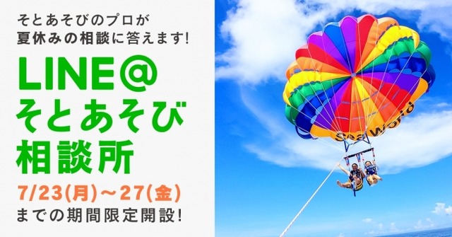 LINE@を活用したインターネット上の相談所です。アウトドア・レジャーに興味はあるが体験したことがない方、自然体験が好きだが次はどれを選んだ良いか迷っている方に、アウトドア・レジャーのプロであるそとあそび研究家 山本 貴義と「そとあそびナビゲーター」がLINEで個別に相談に応じます。AIを活用したチャット機能ではなく、「そとあそびナビゲーター」による人力のマンツーマン対応です。