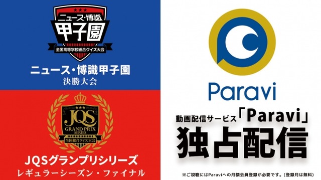 一般社団法人日本クイズ協会(所在地:東京都新宿区、代表理事:齊藤喜徳)が主催するクイズ大会「第1回ニュース・博識甲子園(全国高等学校総合クイズ大会)」決勝戦と、「第1回JQSグランプリシリーズ(全国総合クイズ大会)」トップリーグの全試合が、動画配信サービスParavi(パラビ)で独占配信されることが決定致しました。