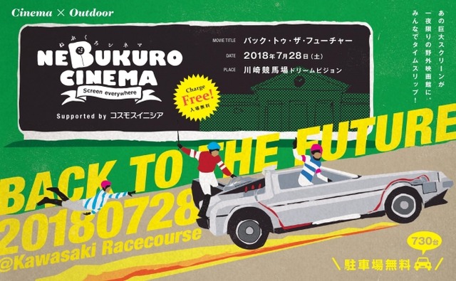 東京都調布市の父親たちが、小さな子供と一緒でも気兼ねなく親子で映画を楽しめる環境と作りたいと多摩川河川敷で始めた野外映画館「ねぶくろシネマ(主催:ねぶくろシネマ実行委員会、企画・制作:合同会社パッチワークス、本社:東京都調布市)」。今や全国各地で開催しており、次回は7月28日(土曜日)。かつてギネスブックにも認定された川崎競馬場のドリームビジョンを使って、「バック・トゥ・ザ・フューチャー(日本語吹き替え+日本語字幕)」を無料で上映する。