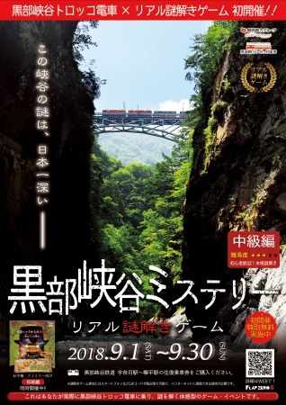 さて、平成30年8月1日より、黒部峡谷鉄道への誘客を図る為、体験型イベント「リアル謎解きゲーム」を実施する事となり、開催日及び詳細を決定致しましたので、下記のとおりご案内申し上げます。