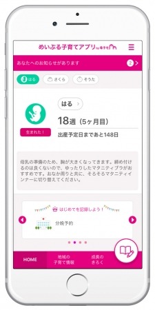 六戸町に採用された『めいぷる子育てアプリ』は、スマートフォン・タブレット端末・PCに対応したサービスで、妊産婦と子どもの健康データの記録・管理や予防接種のスケジュール管理、出産・育児に関するアドバイスの提供など、育児や仕事に忙しい母親や父親を助けてくれる便利な機能が充実しています。