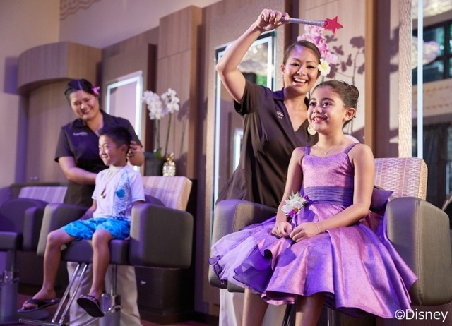 「ペインテッド・スカイ:ハイスタイル・スタジオ」は3歳から12歳までのお子様を対象にした、ヘアスタイリングとメイク、コスチュームやアクセサリーのドレスアップを提供するお子様のためのサロンです。アウラニ限定ドレスでおめかししたり、「モアナと伝説の海」のヒロイン・モアナに扮してみたり、アウラニ限定のプランでお好みの姿に“変身”することができます。お子様にとって特別な思い出になること間違いなしです!