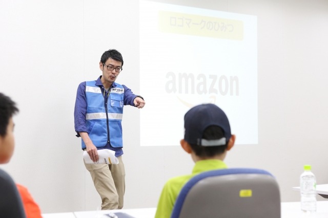 Amazonは、近年、社会インフラとしての重要性が高まる物流への子供達の理解を促進することを目的として、「AmazonのフルフィルメントセンターとAmazon Robotics」をテーマにした特別授業を、小学生とその保護者合計48人を対象に実施しました。国内初の「Amazon Robotics」が導入された川崎FCの責任者であるサイトリードの梶山浩史が講師として登壇し、Amazonのグローバルビジネスやお客様に最高のサービスをお届けするためのフルフィルメントセンターの仕組みを説明しました。次に児童達は、会場に搬入されたAmazon Roboticsの模型を使用して、商品の棚出し作業、安全に作業するためのダンボールの運び方、お客様の商品を丁寧に梱包する作業の3つの体験に参加して、Amazonの働きやすい職場環境やテクノロジーとイノベーションを学びました。