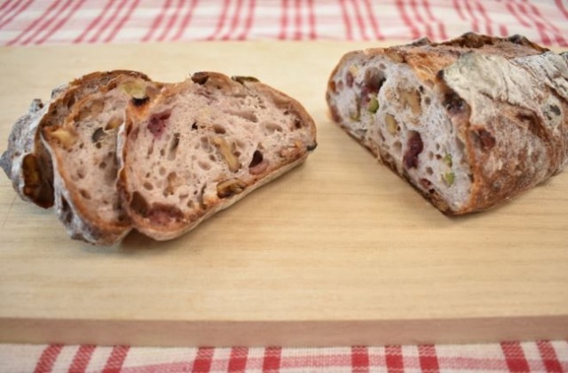 ほのかな酸味や甘みがバランスの良い生地に、オリーブやクルミ、レーズンやクランベリーを入れて焼き上げます。