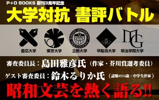 このたび小学館は、2018年8月12日(日)に、昭和文芸の人気ブランド、P+D BOOKSの創刊3周年を記念して、文学好きの現役大学生たちによる、書評プレゼンバトルを開催します。