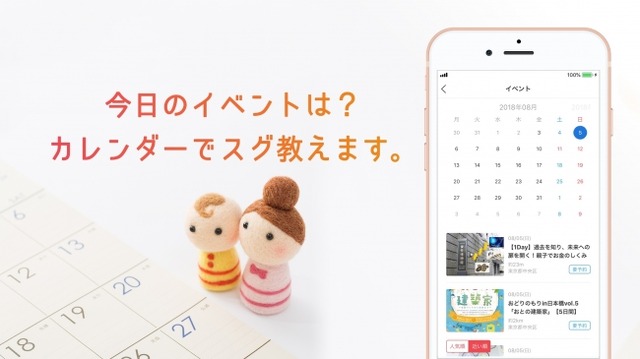 イベントの中身も大事だけど、開催日も重要。カレンダーで日にちを選択するだけで、その日のイベントを教えます。もちろん「人気順/近い順」の表示も装備。