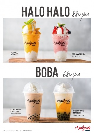 株式会社グローバルダイニングは、エスニック業態「Monsoon Cafe(モンスーンカフェ)」から“ハロハロ2種”と“ボバ(タピオカ)2種”の絶品スイーツドリンクの販売を開始いたしました。