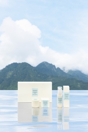 クリーム(30g)と、プチトラベルキットの3種類のスキンケア商品を開発いたしました。名称は、水源である八海山の渓流を彷彿させる日本古来の自然の色味“色”に由来し、「ASAGI」と命名いたしました。