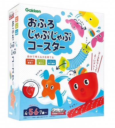 Tinker Kids(ティンカーキッズ)は、遊びを通して、創造力・試行錯誤力・協働性などの、21世紀を生きる力を育成する、学研のSTEAM教育教材シリーズです。『おふろじゃぶじゃぶコースター』は、遊びながら自分で考える力が育つ知育玩具として開発されました。