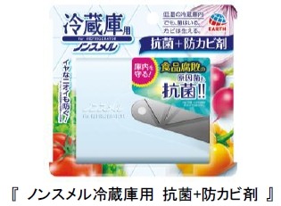 そこでこのたび、「ノンスメル」ブランド※より、置くだけで簡単に冷蔵庫内の抗菌・カビ対策ができる冷蔵庫用抗菌・防カビ剤『ノンスメル冷蔵庫用 抗菌+防カビ剤 』を新発売いたします。冷蔵庫内に置くだけで、ニオイや食品腐敗の原因菌・カビの増殖を防ぎ、冷蔵庫内を衛生的に保ちます。