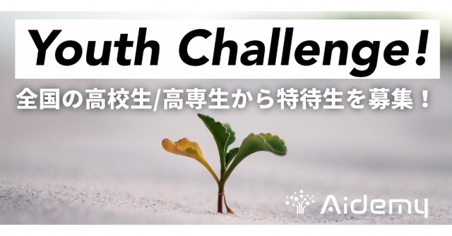 AIプログラミング学習サービス「Aidemy」を提供する株式会社アイデミー(本社:東京都渋谷区、代表取締役CEO 石川聡彦、以下当社)は、8月9日(木)から8月30日(木)まで、現役高校生・高専生を対象にAidemyの全講座を無償提供する特待生制度「Aidemy Youth Challenge」を実施します。