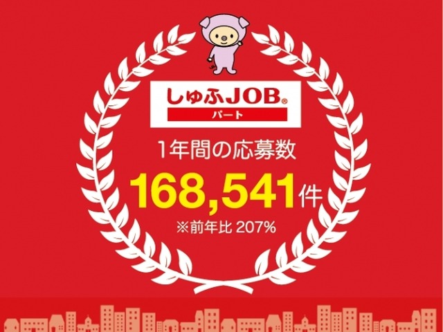 主婦に特化した全国版求人サイト『しゅふJOBパート』(事業運営者:株式会社ビースタイル/本社:東京都新宿区、代表取締役:三原邦彦)の、昨期1年間(※)の応募数が、前年比2倍を超える168541万件となりましたのでご報告いたします。