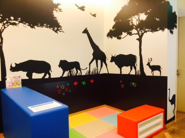 壁面には動物を多くあしらい、お子さま3、4人が遊べる広さを専用スペース化することで、気兼ねなくお子さまが遊べるようになっております。
