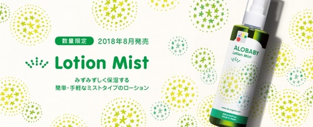 株式会社N&O Life(本社:東京都港区/代表取締役:西口征郎)は、純国産オーガニックベビースキンケアブランドALOBABYより新商品「ALOBABY Lotion Mist (アロベビー ローションミスト)」を2018年8月10日(金)より発売いたしました。