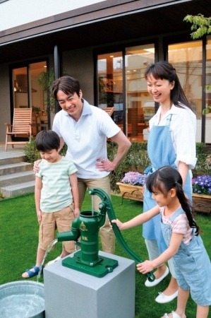 (3)災害時にも有効:災害時の避難生活に最も多くの人々がストレスを抱えるのは、断水と言われています。(全国の工務店ネットワークJAHBnet会員へのアンケート調査を実施したところ、被災地生活で困ったことの67%が「トイレの断水」という結果がわかりました。)アキュラホームでは、災害時の非常用水を確保する目的でも、井戸の設置を推奨しています。また、手漕ぎポンプは電気を必要とせず、災害時のトイレ用水として地域の心強い備えとなると期待できます。
