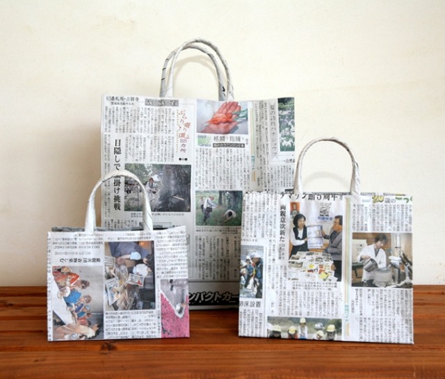 この教室は、「新聞」と「でんぷんのり」を使ってエコバッグを作ります。新聞紙でできているとは言え、しっかりと強度があり使い勝手も申し分ありません。バッグの表面部分は皆さんがお気に入りの新聞記事を使えばオリジナル性も充分。英字新聞を使えばさらにオシャレなバッグになります。