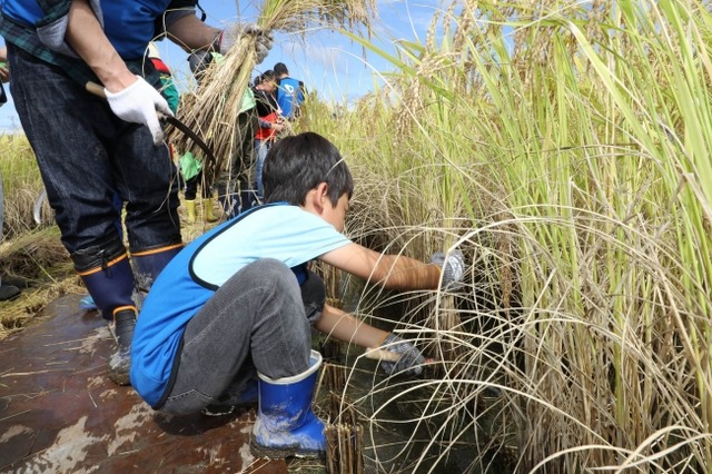 このイベントは、神奈川県、小田原市の協力のもと「金次郎のふる里を守る会」の皆さまと、稲刈りや脱穀、野菜の収穫体験を行います。また、尊徳記念館において、多くの農民救済に 尽力した二宮尊徳の業績を学ぶ「尊徳学習」を通じて、農業の役割・食育の大切さについて 学んでいただきます。親子そろって、ぜひご参加ください。