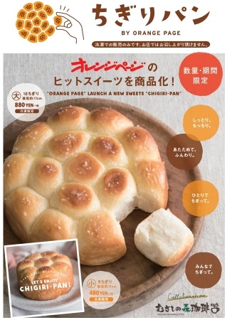 中でも、生地にしみ込んだバターの風味と岩塩のほどよい塩けで、一度食べるとやみつきになると評判の「塩バター味」が商品化され、「ちぎりパン BY ORANGE PAGE」として『むさしの森珈琲』計7店舗に登場します。