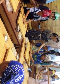 「つくで田舎レストランすがもり」は新城市作手地区内の廃校となった旧菅森小学校を利用したレストラン。山に囲まれた自然豊かな環境のなか3日間で34組78名の親子が地元特産のアマゴのつかみどり、蕎麦打ちなどを体験されました。
