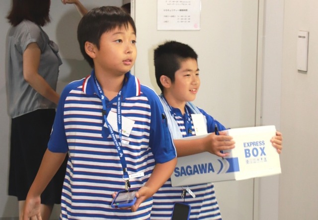 当日は抽選で選ばれた小学5、6年生18名が参加しました。国際物流の授業では台湾やタイの拠点とテレビ会議でつなぎ、現地の社員と交流して荷物の輸出入の流れを体感しました。荷物の配達実習では、業務用スマートフォンで電子サインの受領や社内SNSでの配達完了報告を行ったほか、大型物流施設や様々なトラック、保冷施設の見学をとおして物流のしくみを学びました。プログラムの最後には佐川急便株式会社 栗和田榮一会長(SGホールディングス株式会社代表取締役会長)との質問会を行い、経営トップの考えに触れ、働くことや自分の将来について考えました。